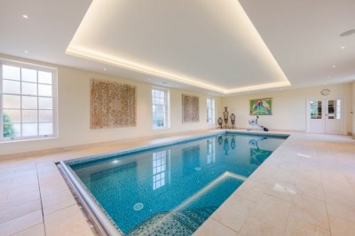 36 miles (58km) from London Georgian-style mansion, with a grand limestone spiral staircase, and a luxurious indoor pool, set in 28 acres. Hertfordshire. (updated listing 2025) |