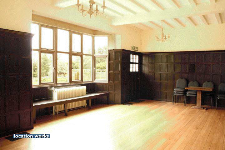 | Victorian country house run as a culture centre, with large hallway and panelled room. West Sussex.