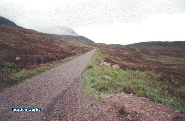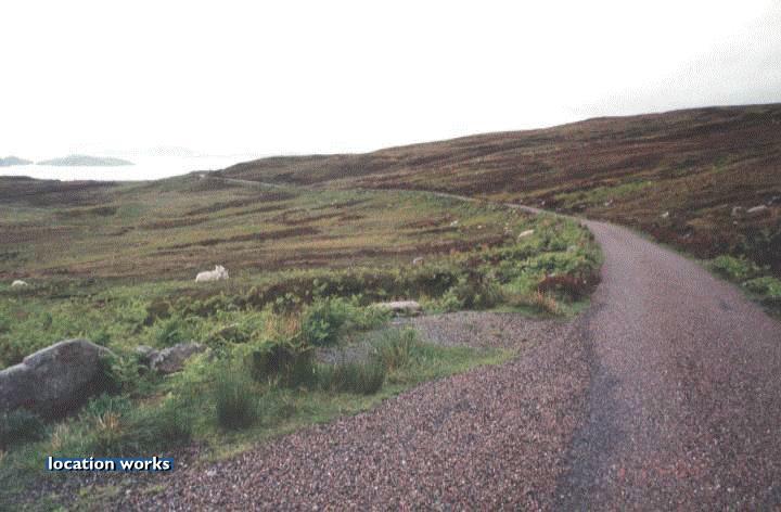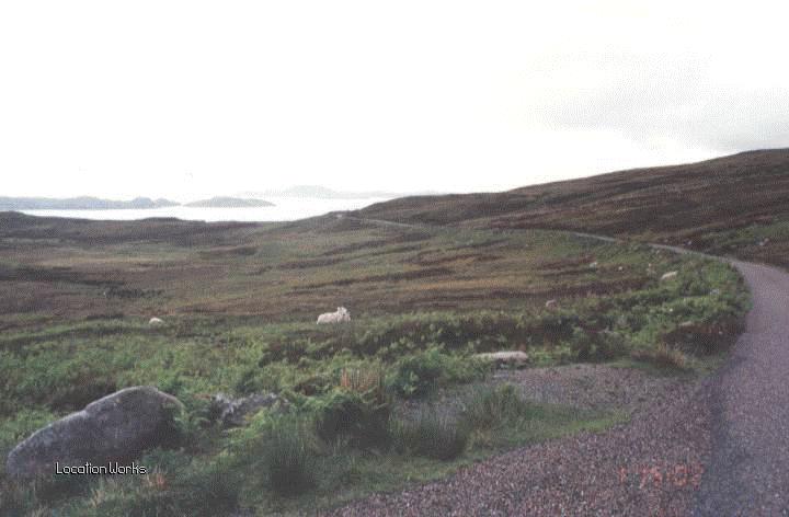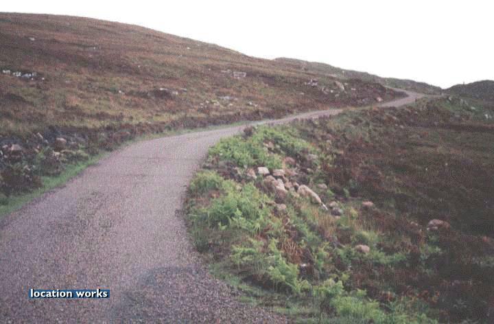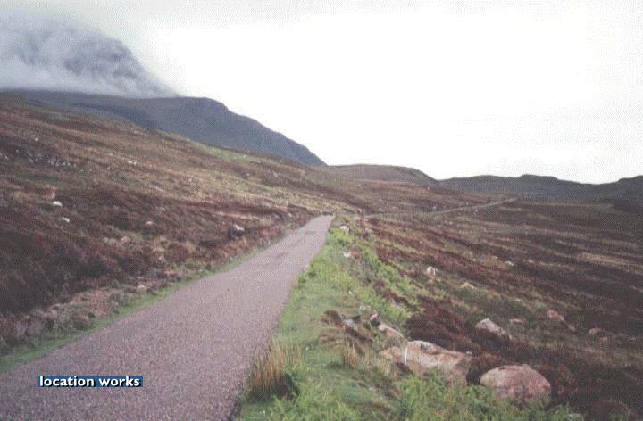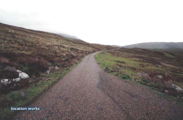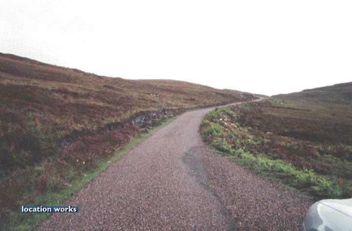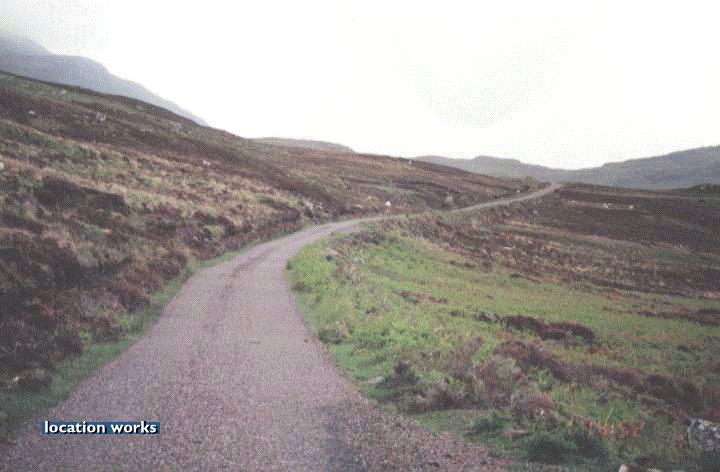 | Inclined country road in Sutherland, Scotland.