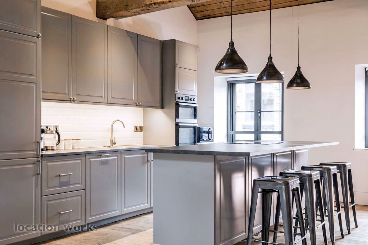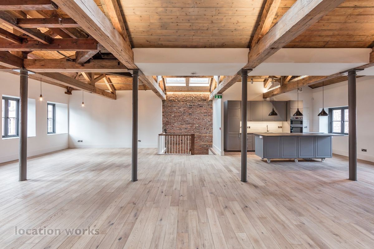 this location is listed in: breakfast bars :: brick walls :: exposed beams :: film / photographic studios :: island hobs :: kitchen islands :: warehouses :: wooden floors.