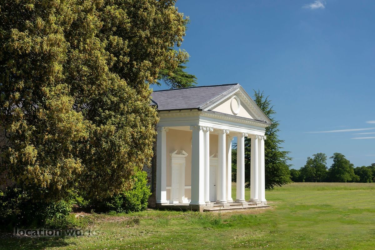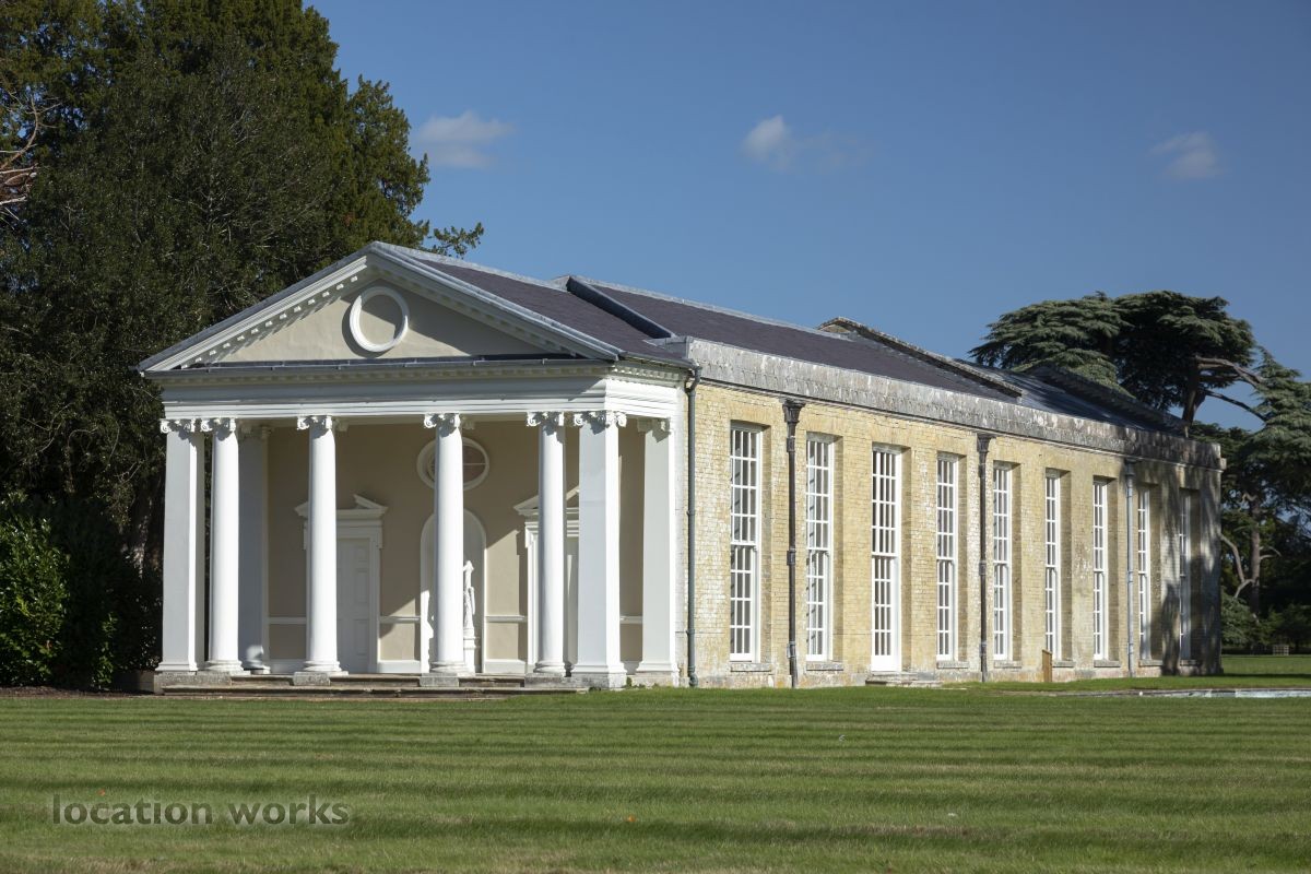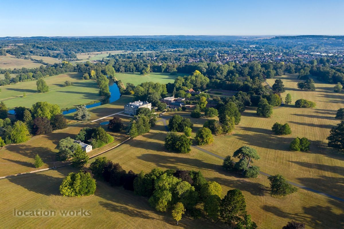 | Rural estate set in 4,500 acres, consisting of woodland, barns, ancient trees, bridges, a river, an orangery and an 18thC house (exteriors only). Hampshire.