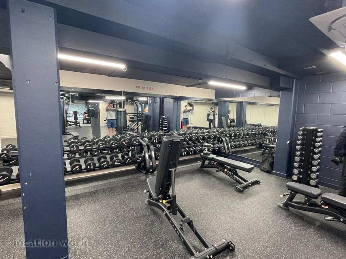 | Gym overlooking canal, with cardio section and a large free weights area. Central London.