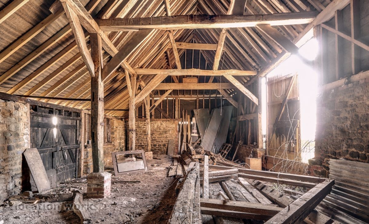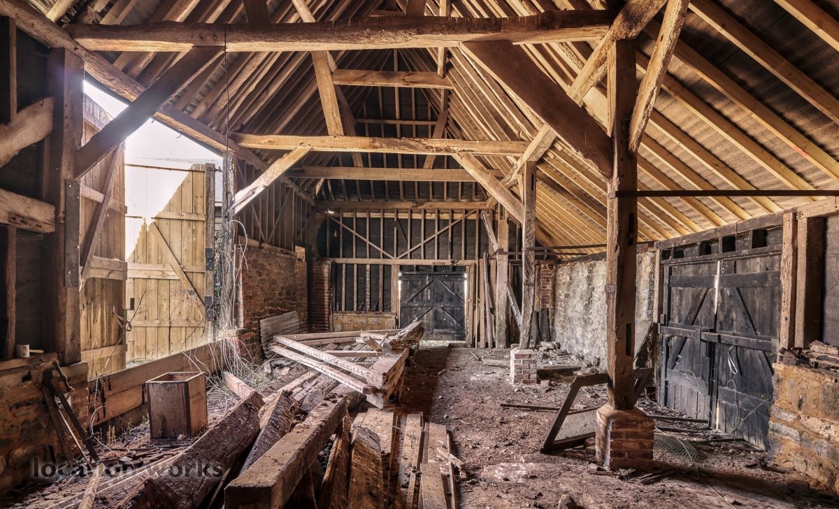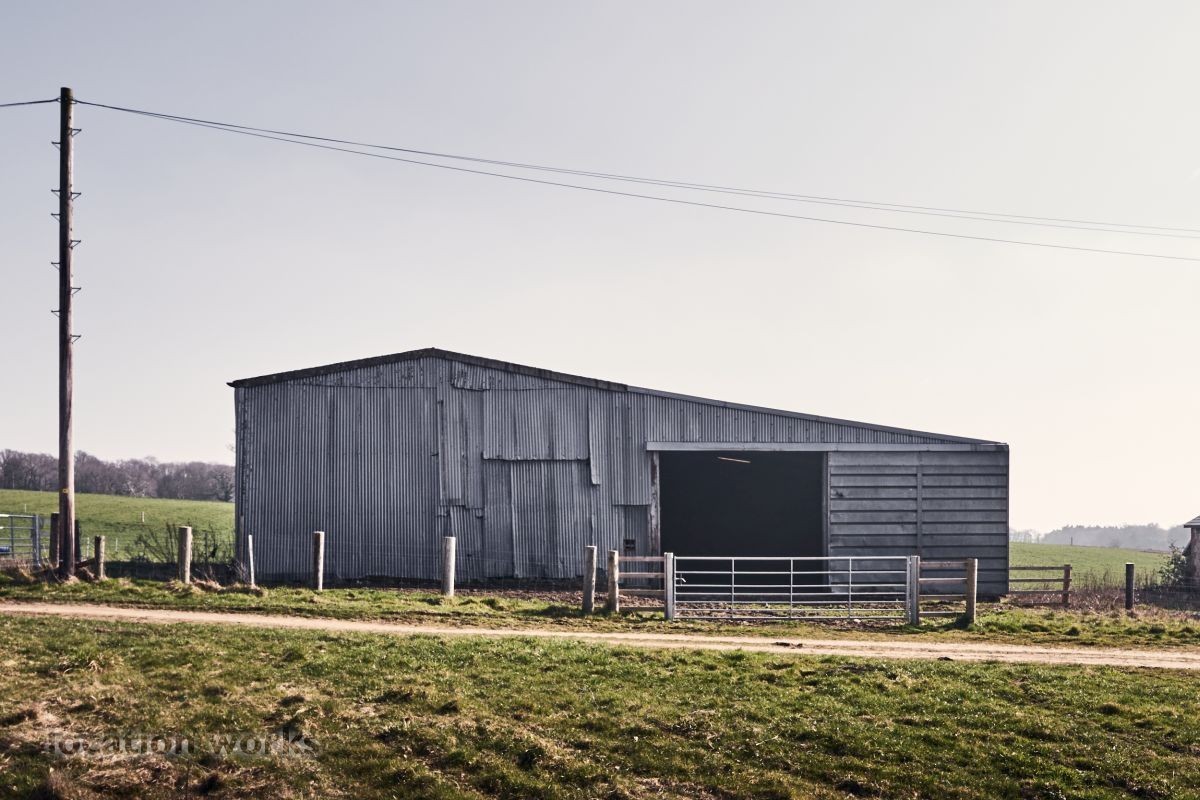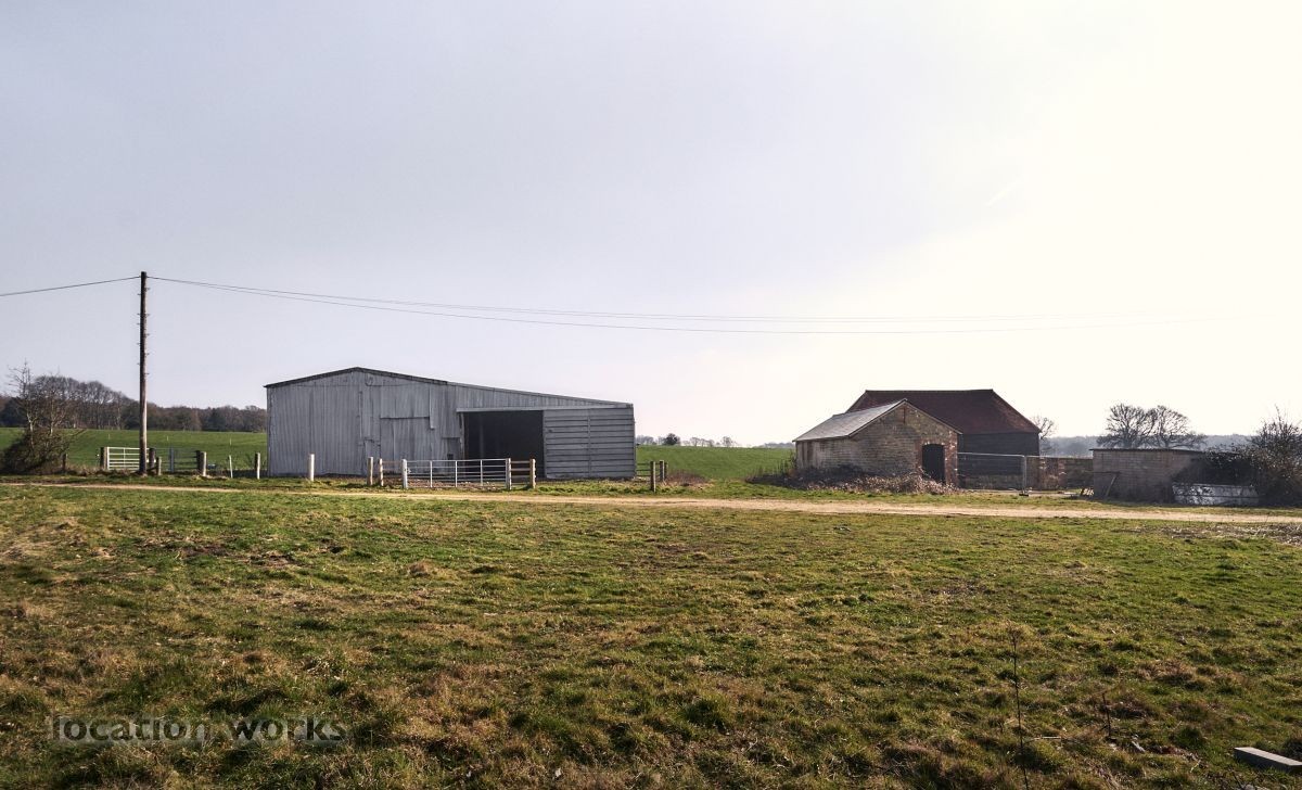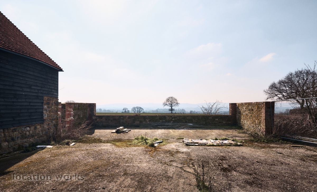 | A rustic L-shaped barn built in the 1780s with a large courtyard area and a modern, steel-framed agricultural barn. West Sussex.