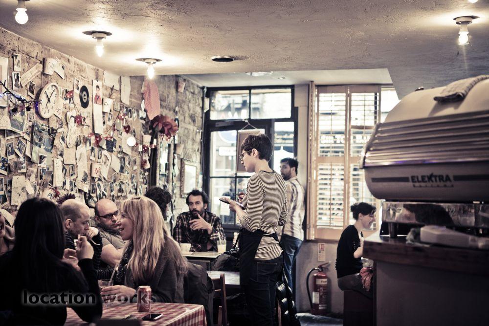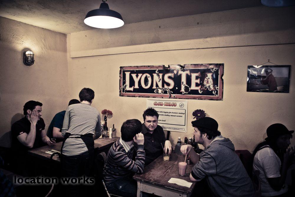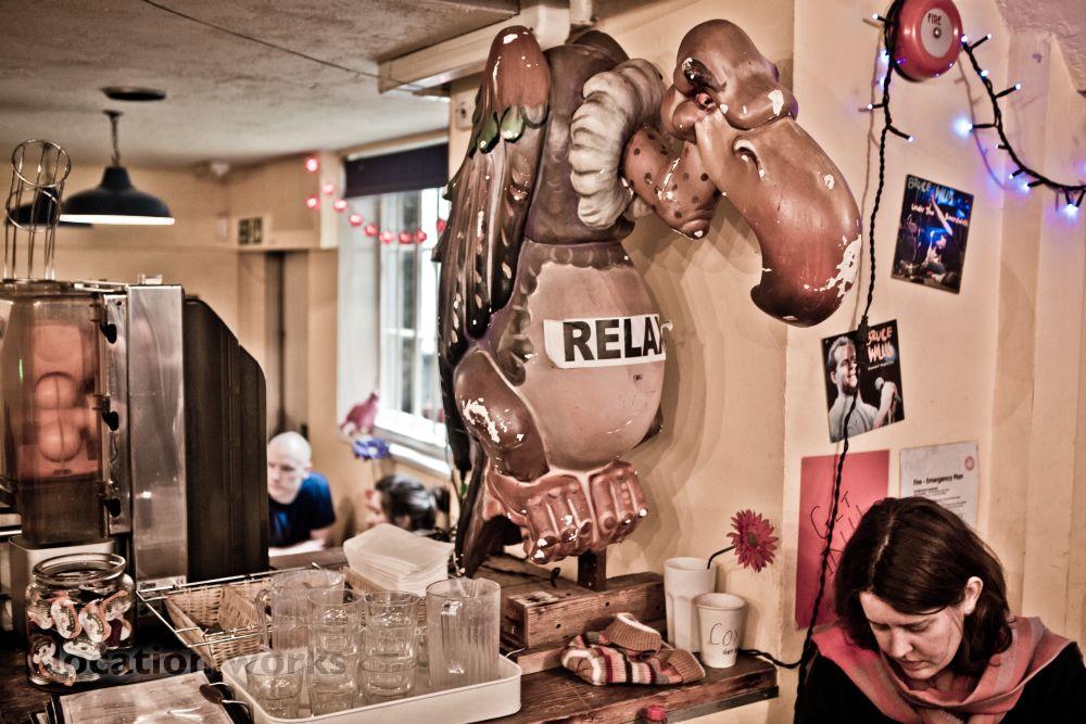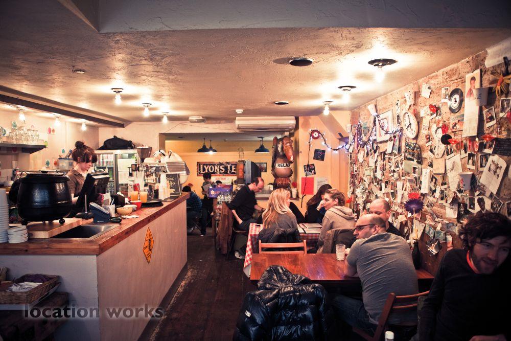 | Cosy cafe with random bric-a-brac and film and music posters. Central London.