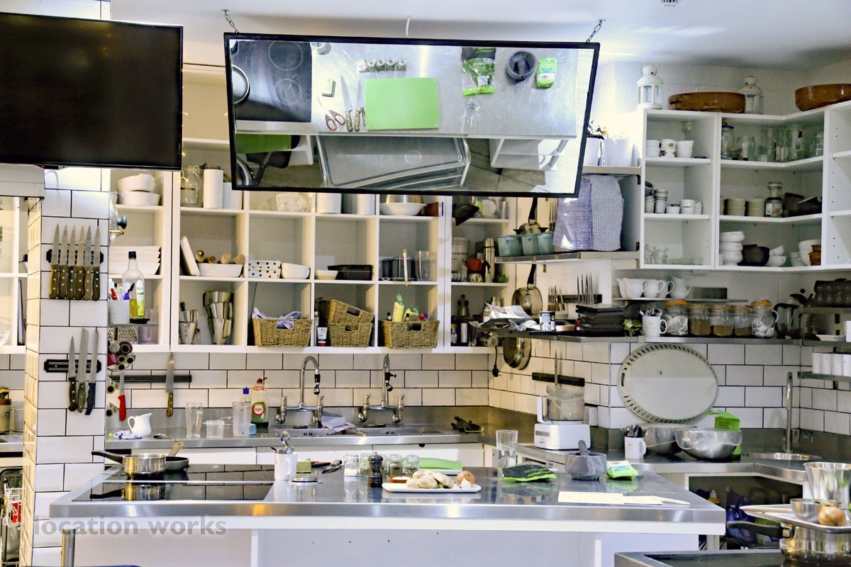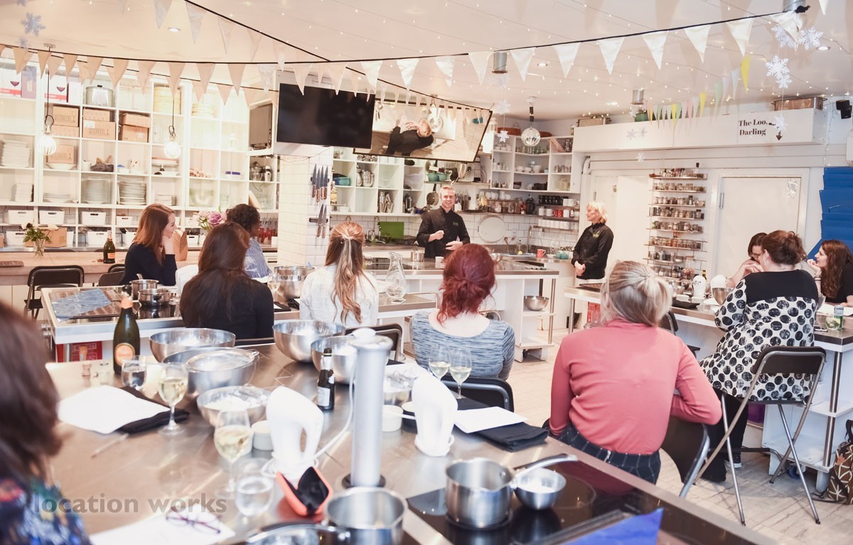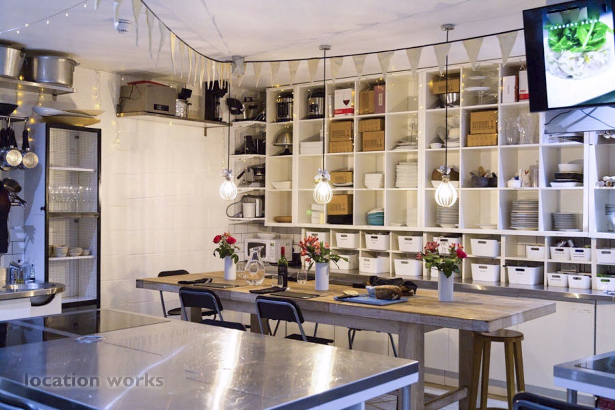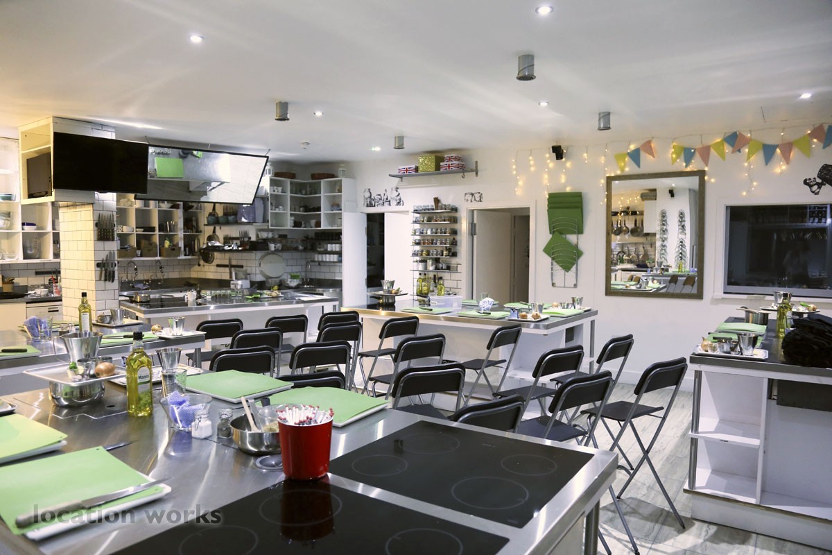| Teaching kitchen: 5 cooking islands with induction hobs, 5 ovens, space for 30 people to cook. Equipped with top brands: Magimix, Kenwood, Anova, Le Creuset, Victorinox. Disabled Access. South west London.