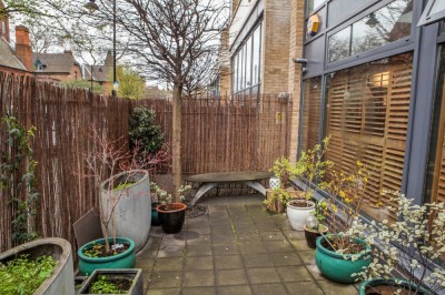 South east London Mid-century four bedroomed townhouse, with a central courtyard and a sun terrace. Other features include a muhuhu parquet floor and a spiral staircase. South east London. |