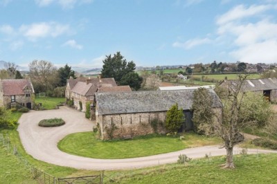 Stone farmhouse in 144 acres of farmland with spectacular views, including courtyard, stables and sheep handling system, Shropshire.