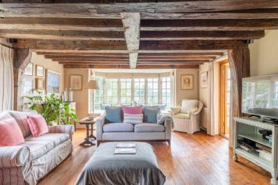 39 miles (63km) from London Timbered period house in a courtyard setting, overlooking a lake. Surrey. |