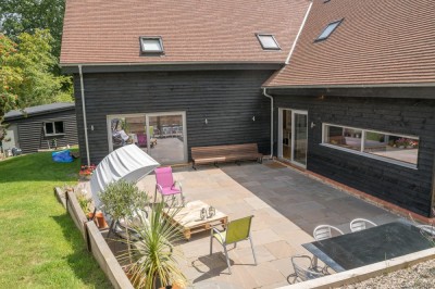 46 miles (74km) from London New-build timber-clad modern house with a bright open-plan interior, Kent. |