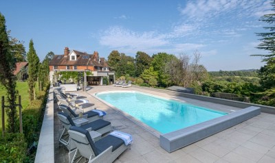 Architect designed modern house, californian style, with outdoor pool, set in 14 acres. Surrey. (updated listing 2024)