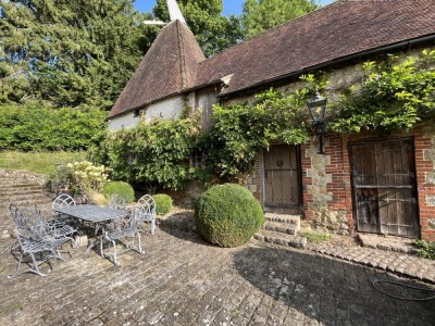51 miles (82km) from London 15th century english cottage, in four acres with an outdoor pool, and oast house. Kent. |