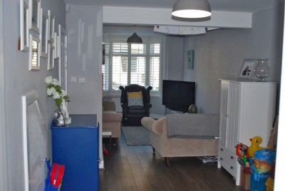 4-bed victorian terraced house with loft conversion, modern white gloss kitchen with bi-fold doors leading to patio and garden. North west London.