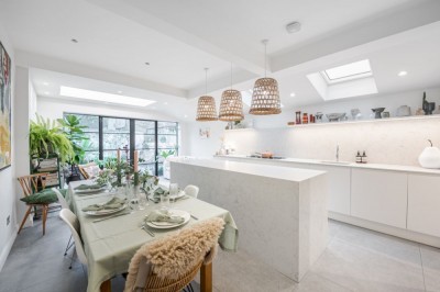 South west London 4-bed semi-detached Long Island style property with open-plan ground floor and walled garden. |