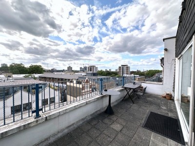 Unique loft style penthouse, open plan, wooden floors, two balconies and private rooftop with panoramic views. East London. (new location 2025)