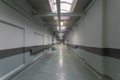 Former polytechnic building, currently empty, with corridors, laboratories and hospital set. 185,000 sq ft. South east London.