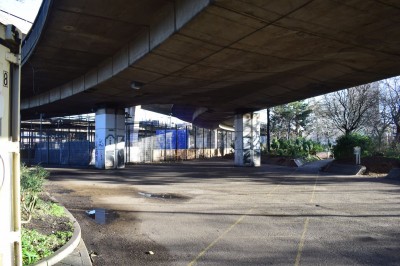 Parking and brutalist exteriors. Central London.