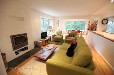 134 miles (216km) from London Contemporary architect-designed cedar house, with a glass bridge entrance, overlooking a valley view. Devon. |
