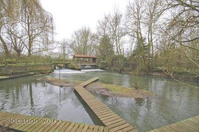 52 miles (84km) from London Half timbered mill house, approached over a bridge and gravel drive with electronic gates. The 1 acre plot includes mature trees, a pagoda, a large weir and a banqueting barn. Oxfordshire. |