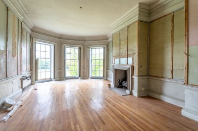 77 miles (124km) from London Elegant georgian house, in disrepair, set on 40 acres, approached through tall iron gates along tree lined drive, with walled garden, haha and woodland. Suffolk. (new location 2025) |