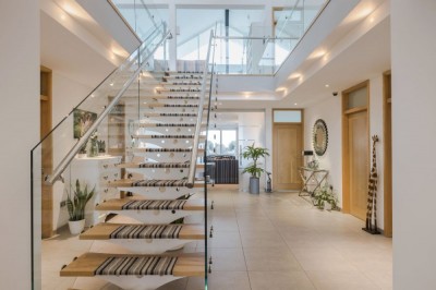 Contemporary house with high ceilings and abundance of natural light. There are 5 bedrooms, 3 bathrooms, 2 kitchens and sea views. West Sussex.