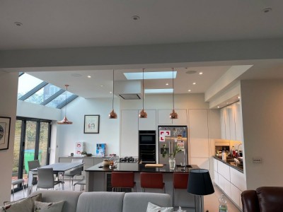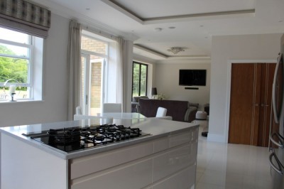 Detached property, with open plan living space and modern kitchen. West London.