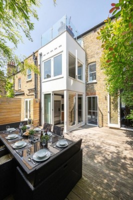 listed in: terraced / smaller houses :: kitchen/diners :: wooden floors :: light and bright :: kitchen islands :: modern kitchens :: patios, terraces :: bedrooms :: london family homes :: island hobs :: empty buildings.