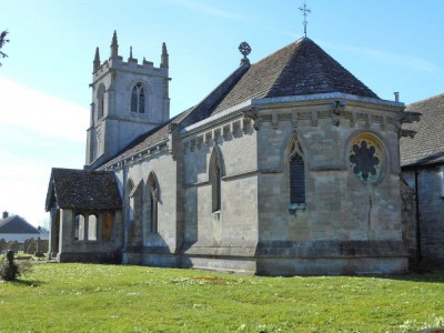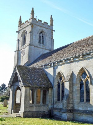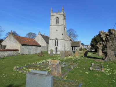 | Stone church with a 14thC tower and later nave and chancel, surrounded by a typical english country churchyard with wild flowers and yew trees. Rutland, Leicestershire.