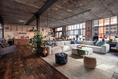 East London New York style loft apartment, opeb polan, with large warehouse windows, and original wooden floorboards. East London. |